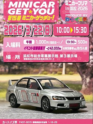イベント参加のお知らせ☆ 公開済み: 2026年3月12日更新: 2026年3月12日作成者: iiado-osakaカテゴリー: お知らせ 第15回 MINICAR GET★YOU」(ミニカーゲッチュー)に出店いたします。 日 時:2026年3月22日(日)10:00~15:30 会場:浜松市総合産業展示館 第3展示場 皆様のご来場お待ちしております☆ 関連記事 お子様のご入店について 当店は小さなお子様のご入店をご遠慮いただいております。コレクターのお客様が多く商品は綺麗な状態でのご購入を希望されております。ご理解をいただきますようお願い致します。 公開済み: 2020年3月7日更新: 2020年3月25日作成者: iiado-osakaカテゴリー: お知らせ